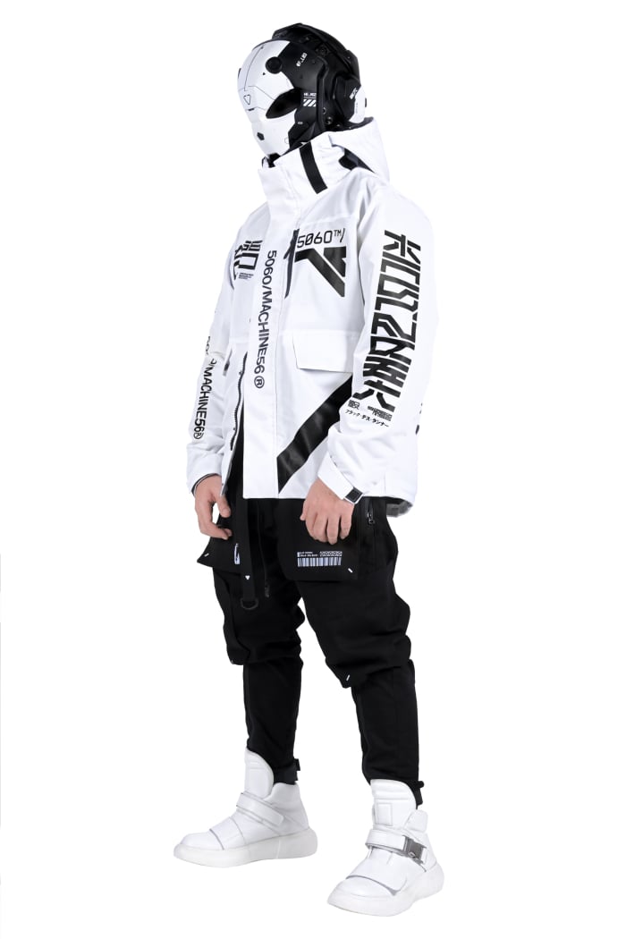 Upgraded fit of ARK_V2 series in white color. Medium frame coat style jacket.