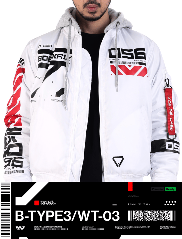 Type-3 series in diamond white, Heavy duty rugged bomber jacket,