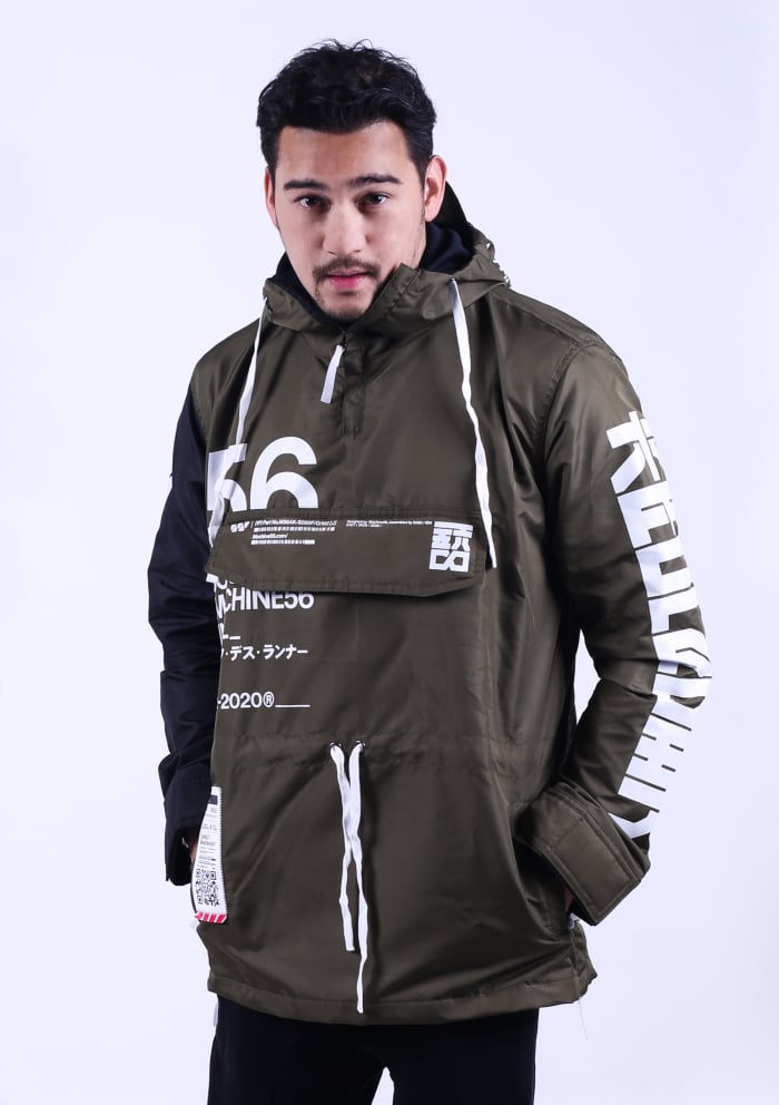 The Anorak conveniently packs in a front self pocket for storage and portability