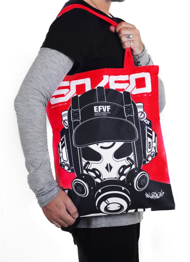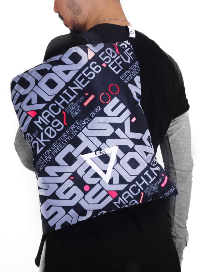 custom waterproof standard size Totebag, with a selected various graphic from Machine56 vectorial arsenal since 2002.