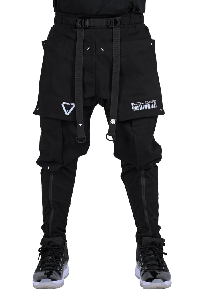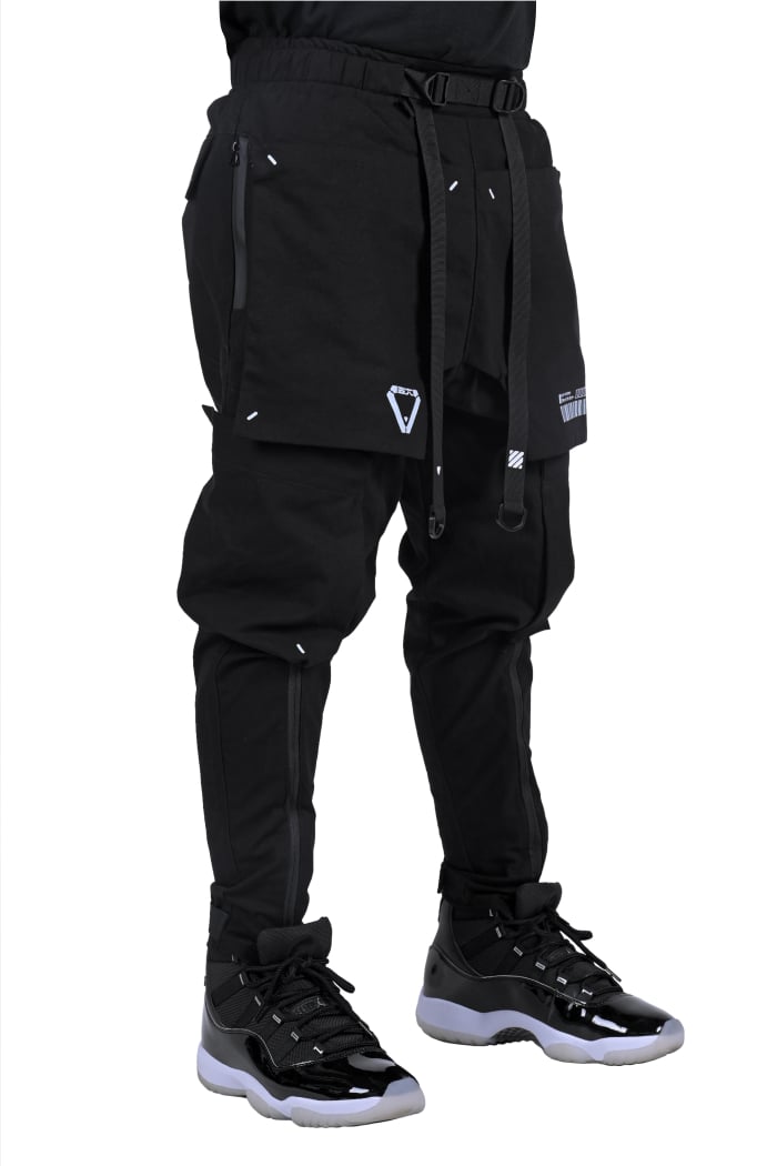 Dual layers Black Rugged smooth cargo pants.